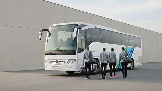 Large buses (e.g., Yutong, Higer) are ideal for transporting entire squads and coaching staff with full equipment.